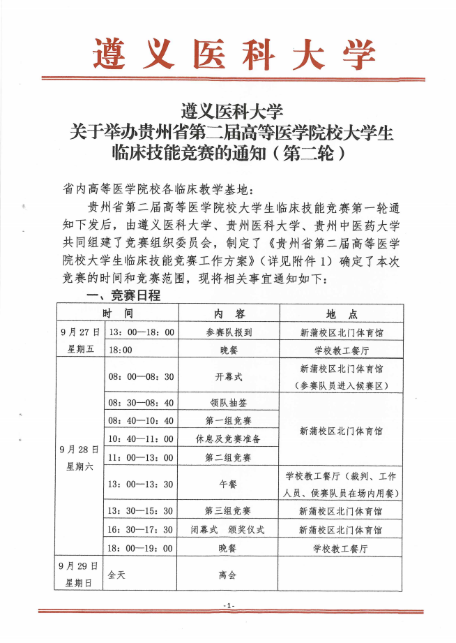【通知】遵義醫(yī)科(kē)大學(xué)關于舉辦(bàn)貴州省第二屆高等醫(yī)學(xué)院校大學(xué)生臨床技(jì )能(néng)競賽的通知(第二輪)